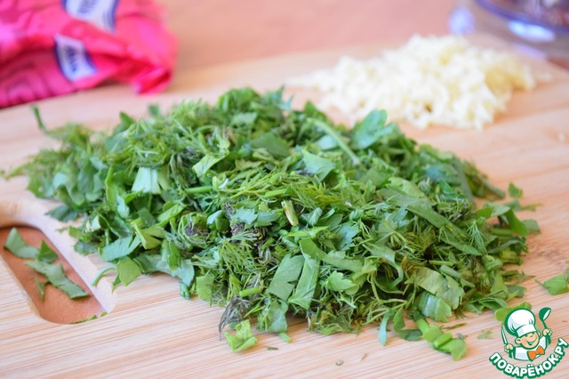 Чеснок мелко нарезать (или пропустить через пресс, или натереть на мелкой терке)