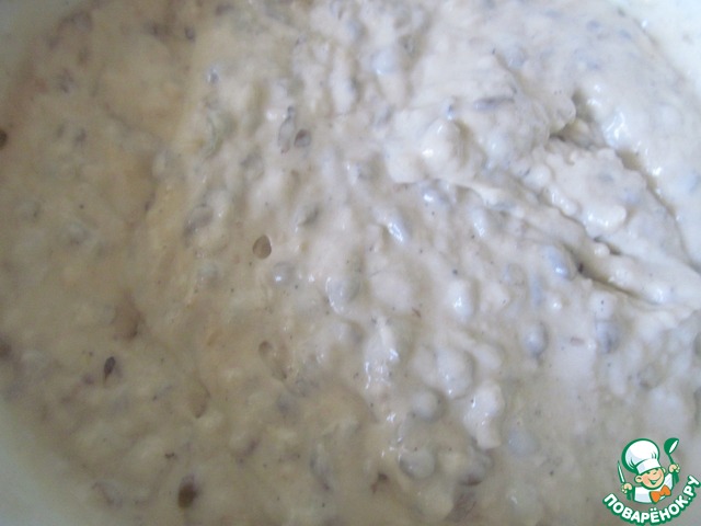 3. Добавить яйцо, сметану, кефир, соль, растительное масло, муку. Тесто по консистенции как на оладьи.