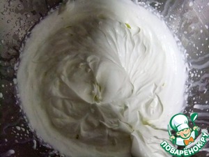Взбить белки в крепкую пену, постепенно добавляя сахар.