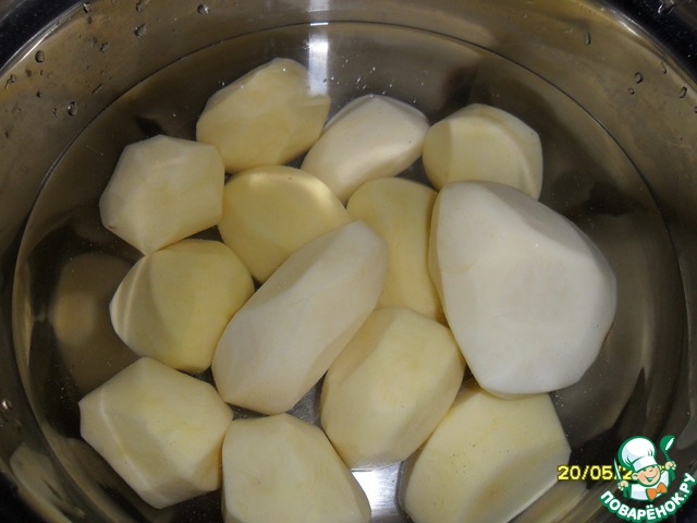 Первым делом очистим картофель и поставим его вариться. Не забываем про соль.