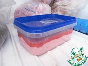 Выкладываем в контейнер наш десерт. Сверху я ещё отдельно взбила клубнику, и залила.