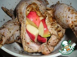 • В широкое куриное место кладём яблоки.