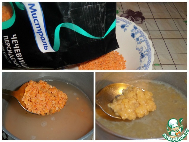Чечевицу промываем. Заливаем холодной водой. Варим до готовности. Солим. Остужаем.