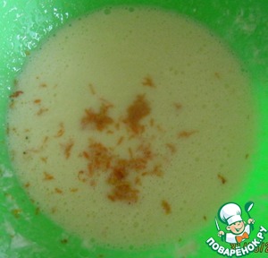 Добавляем наполнитель. В данном рецепте готовилась апельсиновая запеканка, поэтому добавляем цедру апельсина.