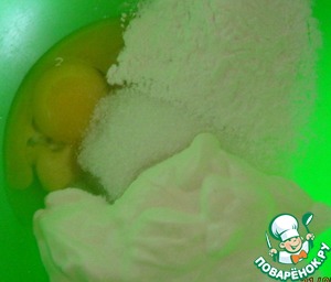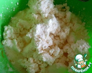 Добавляем к твороженой массе и опять все хорошо взбиваем!