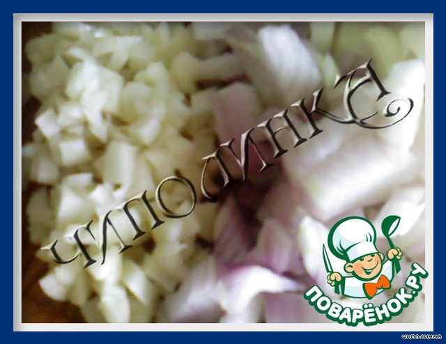 • Лук и чеснок мелко нашинкуйте.