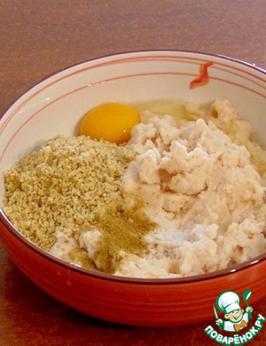 Добавить яйцо, молотые орехи - 4 ст. л, хмели-сунели, соль.