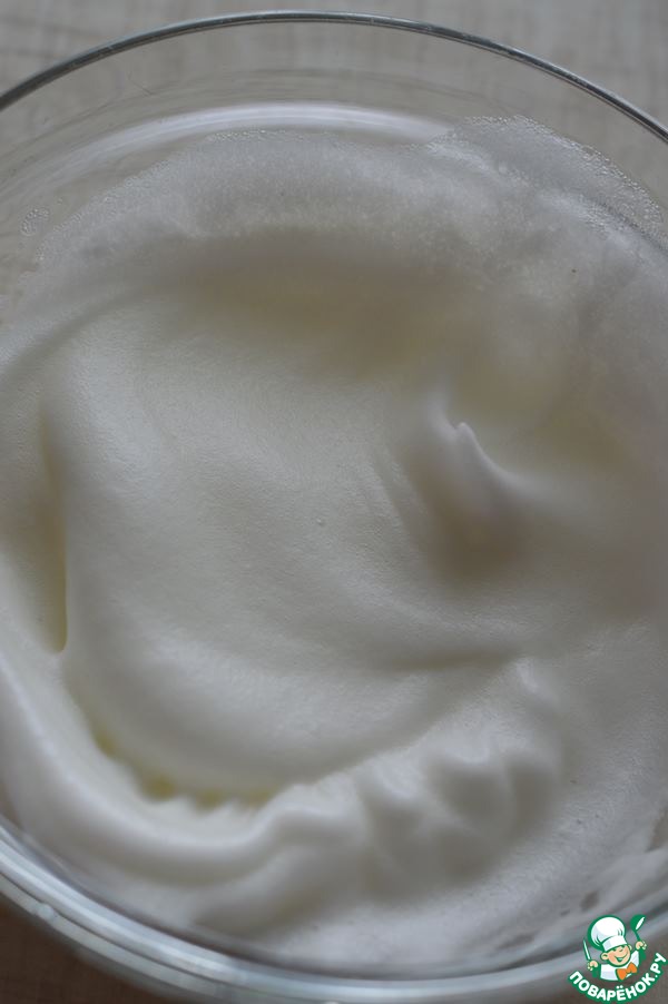 2. Духовку разогреть до 160С. Белки взбить в крепкую пену со щепоткой соли.