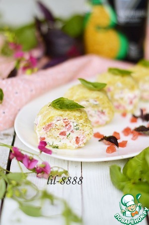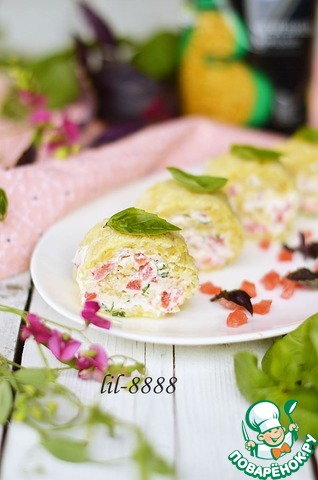 Нежная, легкая, нарядная закуска. Начинку можно подобрать по своему вкусу.