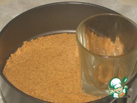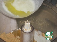 Перемалываем печенье в блендере до крошки. В микроволновке растапливаем масло и вливаем его в то что раньше было печеньем. |