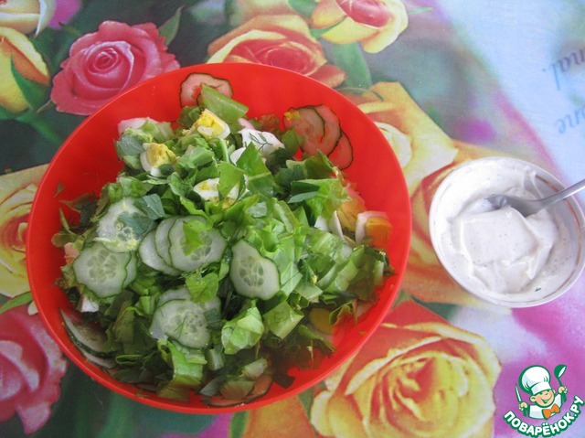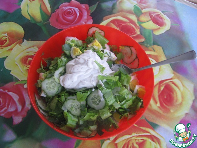 Рецепт «Зелёный салат со сметаной и яйцом»: