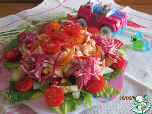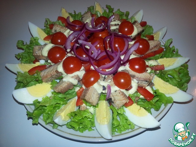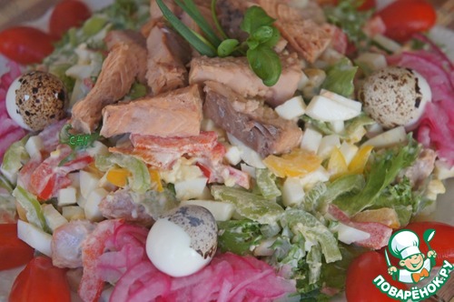Рецепт «Салат из горбуши с болгарскими перцами»: