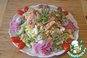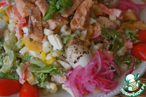 [+5]Нереальная вкусовая гамма! Маринованный лук делает своё любимое дело: даёт потрясающий вкус и послевкусие. А заправка... М-м-м! Обалденный салат! Нина, он навсегда в моем арсенале!