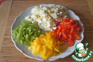 - Перец болгарский (по половинке разного цвета) — 1,5 шт