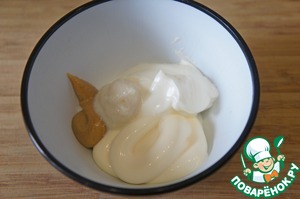 Ингредиенты для заправки выложить в мисочку и взбить вилкой.