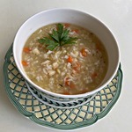 Подавить суп сбрызнув оливковым маслом и посыпав зеленью петрушки.
