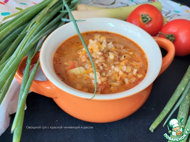 Овощной суп с красной чечевицей и рисом