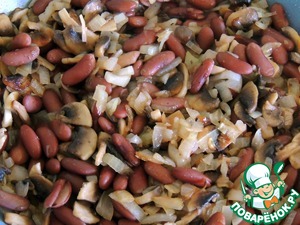 • К грибам добавляем фасоль, перемешиваем и ещё 5 минут обжариваем под крышкой.