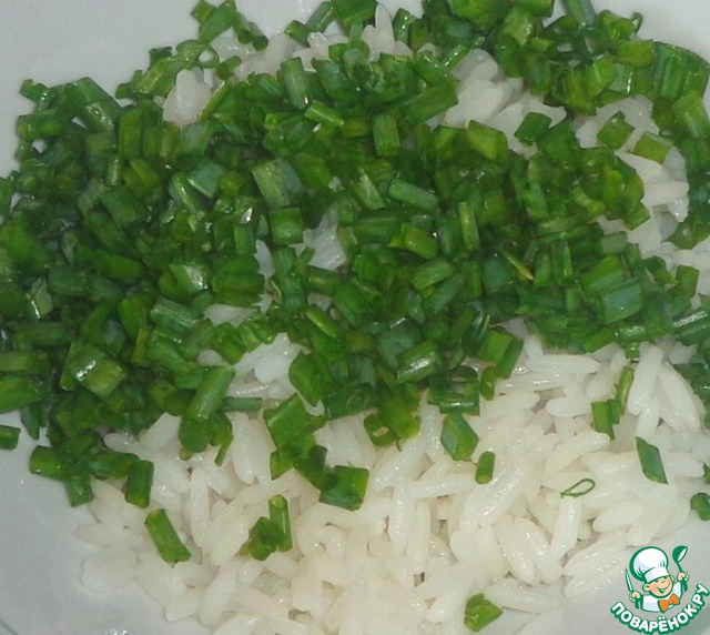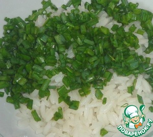 К рису добавляем измельченный зеленый лук.