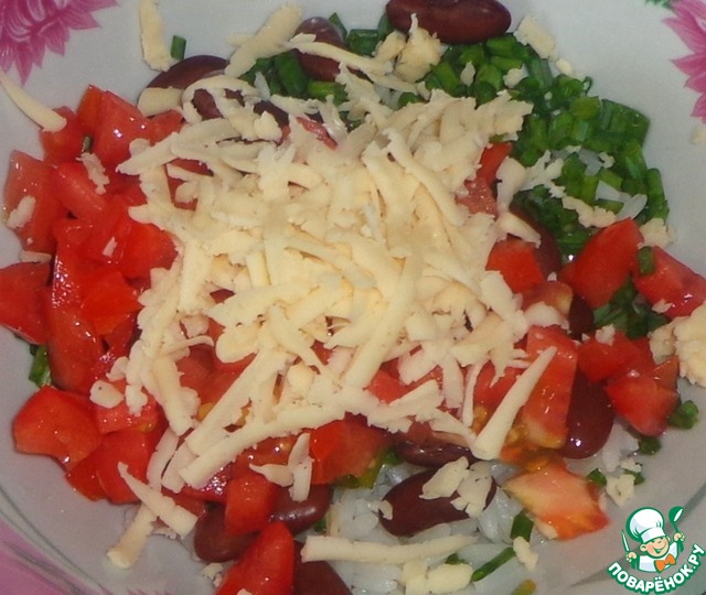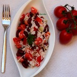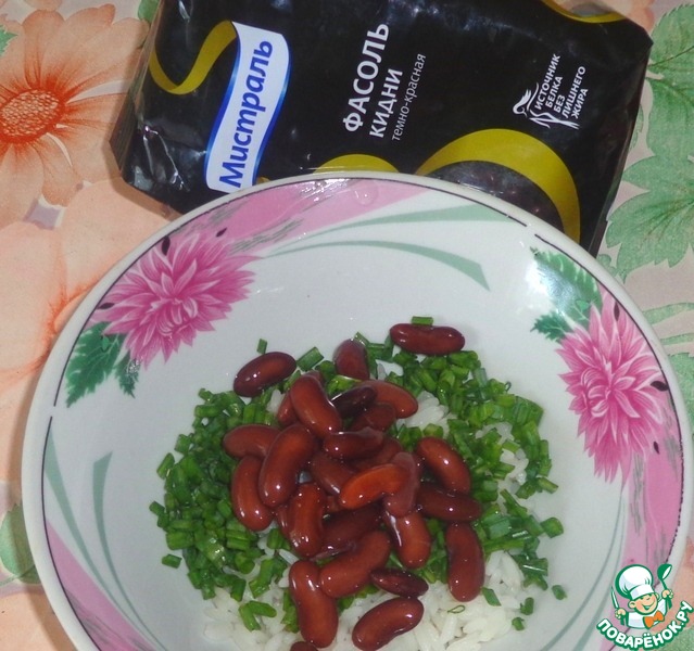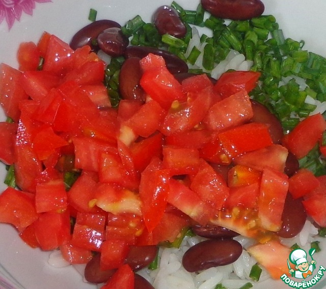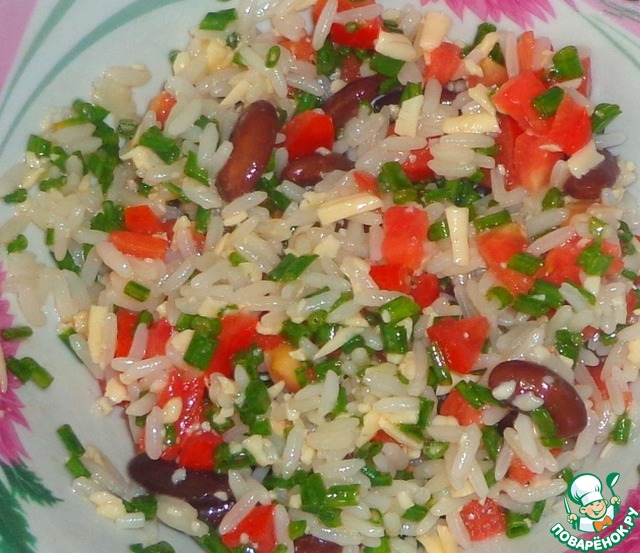 Красивый, ароматный и вкусный салат с фасолью и отварным рисом.