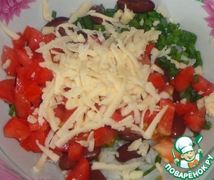 Сыр натереть на крупной терке и добавить в салат.