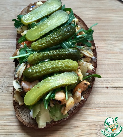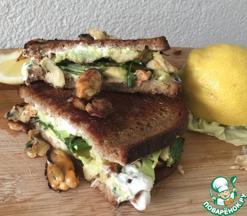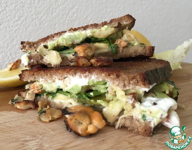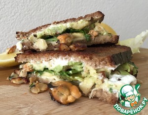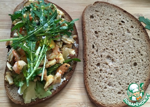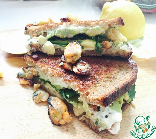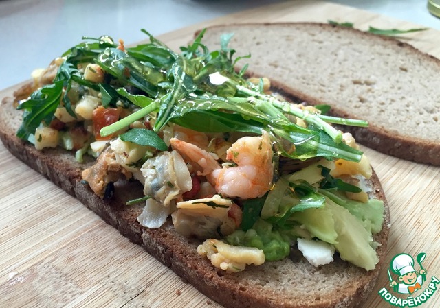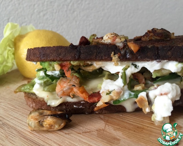 Рецепт «Сэндвич с морепродуктами, медом и сырами»: