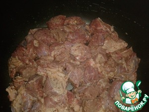 Нарезаем мясо кусочками. Т. к. мясо у меня было немного, поэтому я делала их небольшими.