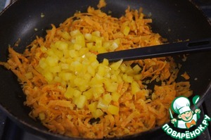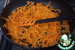 Морковь натереть на крупной терке, перец мелко нарезать. -