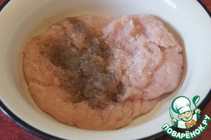 Из курицы приготовить фарш, посолить, поперчить по вкусу,