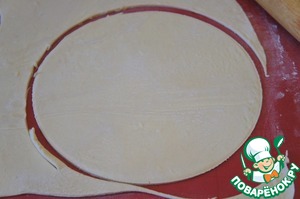 Тесто раскатать, с краю вырезать кружок диаметром примерно 22-24 см.