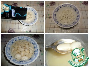 Фасоль заливаем водой и оставляем на ночь. Воду сливаем. Фасоль промываем. Кладем в кастрюлю, заливаем 5 стаканами воды и ставим варить. Варим до готовности. Солим.