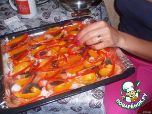 Овощи приготовить и выложить на противень, покрытый фольгой.