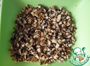 Грецкий орех порубить на небольшие кусочки и отправить в тесто.