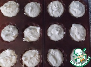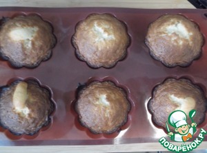 Тесто выложить в формочки и отправить в духовку. Выпекать при температуре 200 градусов примерно 30-40 минут. Все зависит от духовки.