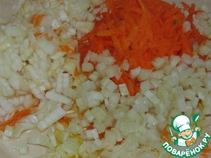 Морковь натереть на крупной терке, лук и сельдерей нарезать мелкими кубиками.