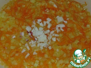 К овощам добавить мелко порубленный чеснок (у меня был свежий, не острый). Потушить пару минут.