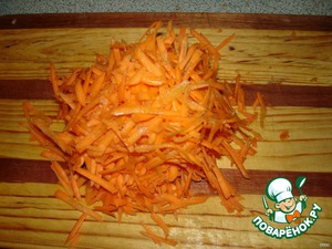 На сковородке разогреть сливочное масло. Поджарить лук до прозрачности и добавить морковку. Обжарить, помешивая, 10-15 минут.