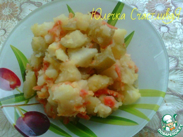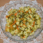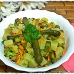 Описание: Если у Вас остались "лишние" соленые огурцы и отварная картошка, предлагаю использовать их вот в таком простом салате. Чеснок и обжаренная на душистом растительном масле морковь придают ему пикантный и яркий вкус.