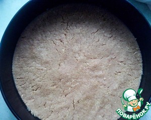 Печенье размолоть в крошку. Сливочное масло растопить. Смешать с печеньем. Застелить форму по дну пергаментом. Равномерно распределить печенье по дну формы. Убрать в холодильник.