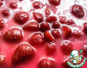 Нарезаем клубнику на украшение. Достаем форму из холодильника и соответственно украшаем.