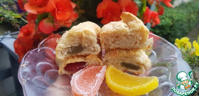 Слоeный рулет с мармеладом. Очень вкусный.
