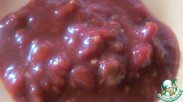 5. Залить 3 ст. л. томатного соуса. Я брала готовый с кусочками помидоров, болгарского перца, специй