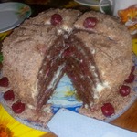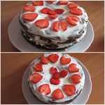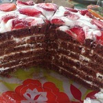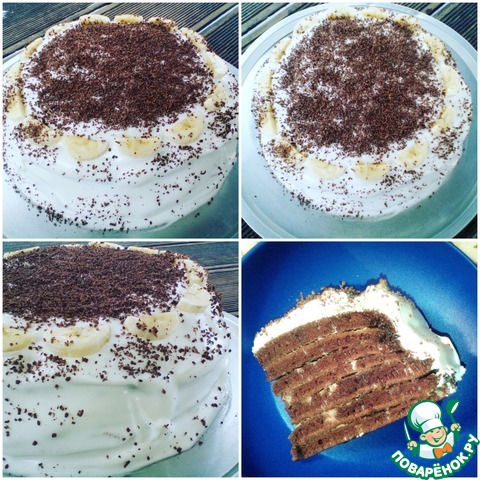 В следующий раз попробую сделать сметанный крем, как в рецепте и коржи потолще. Думаю, можно смело добавлять сюда вишню, банан и орешки.