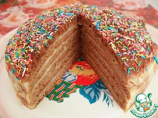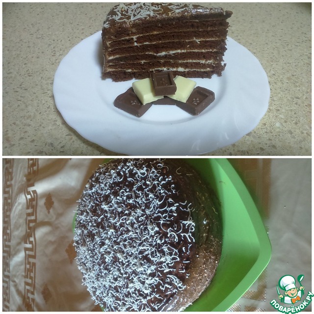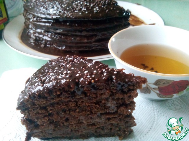 Ура-ура-ура!!! Я поварёнок 4 уровня!!! В честь такого события предлагаю ещё один рецепт торта на сковороде. Тесто не надо месить, раскатывать и обрезать - коржи пекутся из наливного теста. Торт на сковороде очень выручает в жаркую погоду, когда духовка занята, не работает или её вообще нет, на даче, например) Рецепт простой, экономичный, а результат отличный) Рецепт основан на бисквите "Шоколад на кипятке", который многие знают и любят. Я тоже люблю такой бисквит и выпекаю его и в духовке, и в мультиварке - но тогда не всегда получается разрезать его на много коржей - бисквит очень нежный. А вот с помощью приготовления на сковороде можно приготовить любимый "Шоколад на кипятке" быстро, вкусно, с 5-7 коржами) Предлагаю попробовать!