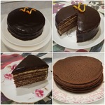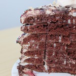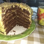 В рецепте указано полпорции стандартного бисквита "Шоколад на кипятке" - это 5-7 коржей.