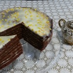 [+4]Коржи, после выпечки, накрыла пленкой и поставила в хол-к на час, пока сварился и остывал крем и сироп для пропитки.