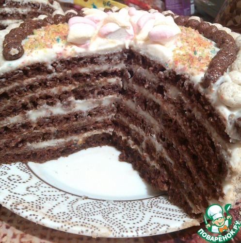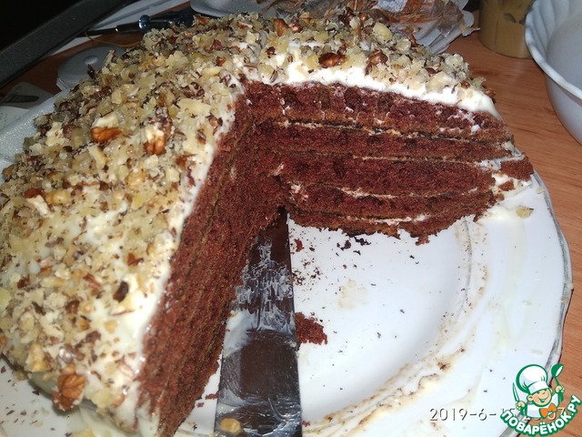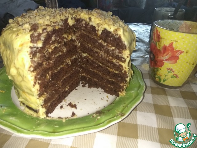 Из указанного количества теста получается 5-6 коржей.