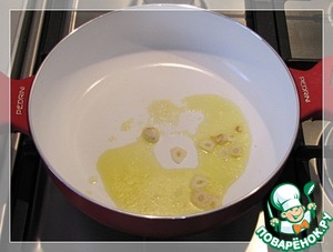 • Растопить в сковороде кусочек сливочного масла (хотя оливковое здесь более уместно). Добавить раздавленный или порезанный пластинками чеснок