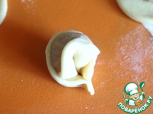 • Края слепить между собой, получается как бы пельмешек с открытым верхом.