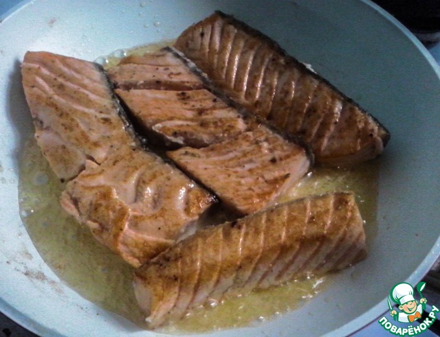 С каждой стороны обжариваем филе не более одной минуты. Нам нужна только корочка.